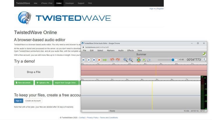 Более профессиональная версия редактора TwistedWave Online покорила пользователей своим функционалом и простотой использования. Эта сборка обладает инструментом автоматического обнаружения тишины, пакетной обработкой файлов и встроенным конвертером.