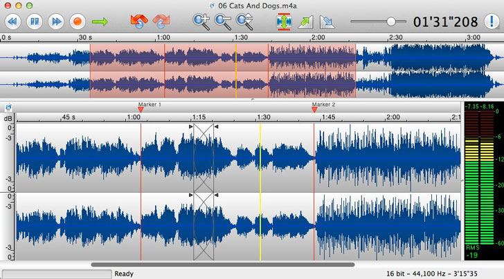 Одна из самых простых и компактных программ работы с музыкой на Mac. Если вам необходим софт для сведения треков, автоматической коррекции качества звука, записи со сторонних носителей или конвертации файлов – это лучший вариант. Наличие таких эффектов как реверберация, эквалайзер, и реверс – тоже большой плюс у такого простенького редактора.