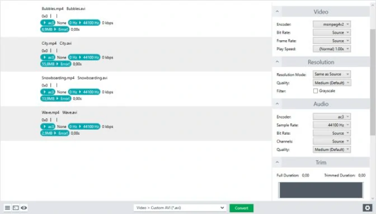 Простая и быстрая программа с легким интерфейсом и набором необходимых функций для конвертации видео, аудио и картинок. Поддерживает все востребованные форматы, позволяет редактировать конечный файл, а также поддерживает пакетную конвертацию – если нужно обработать сразу несколько аналогичных файлов, не нужно конвертировать их по очереди.
