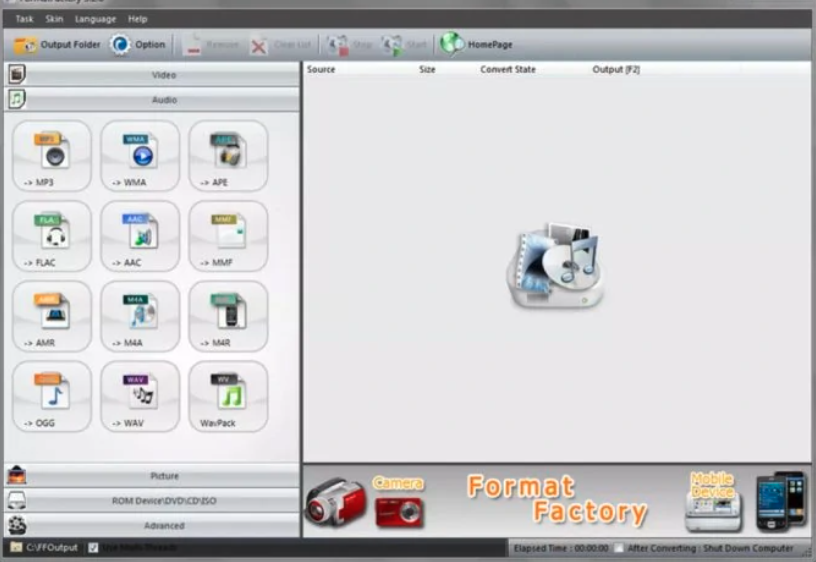 • Конечные форматы: MP4, AVI, MKV, WMV, MP3, DVD, 3GP, SWF, FLV, HD, MOV, RM, QT, Divx, Xvid, TS, Fraps и прочие.