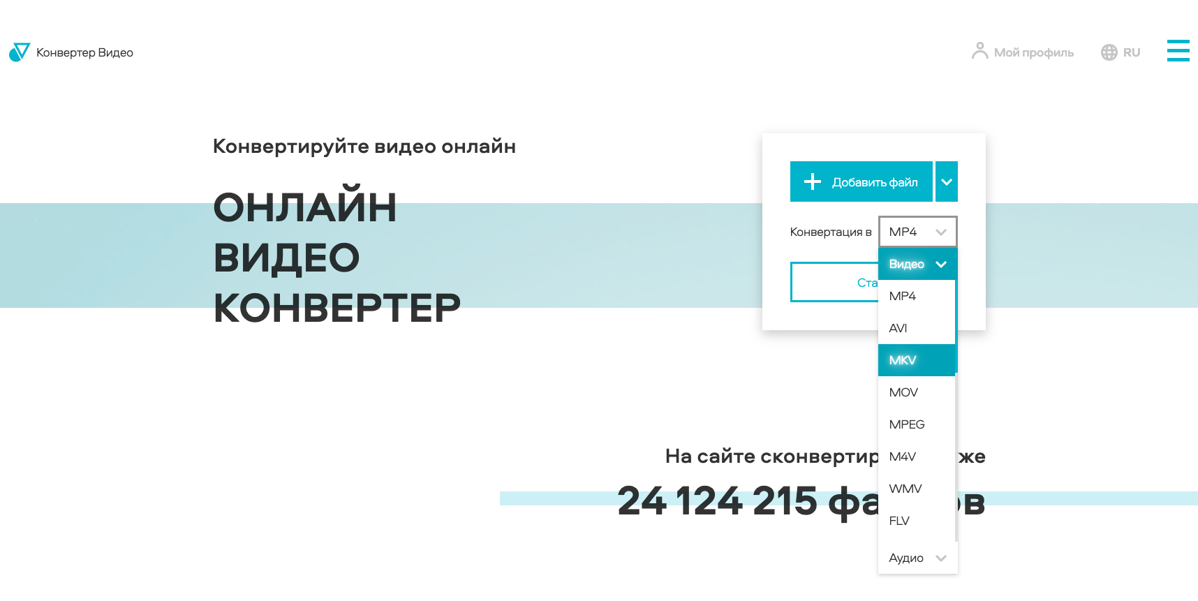 • Конечные форматы: AVI, MP4, MPG, FLV, MKV и другие