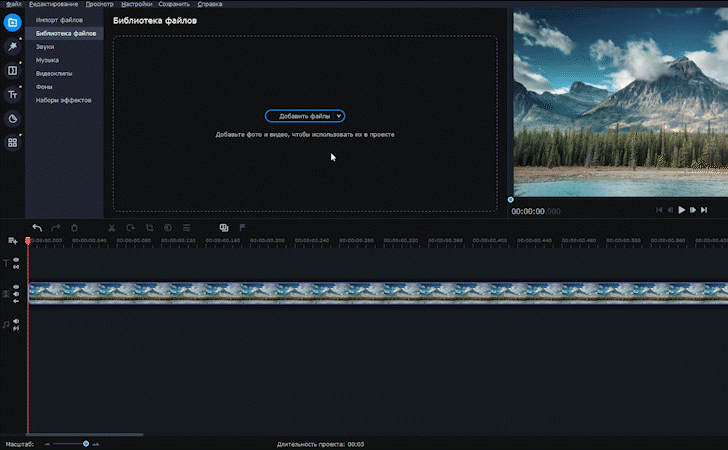 У видеоредактора отличный, простой и дружелюбный интерфейс: разберётся даже тот, кто ни разу в жизни не брался за монтирование видео. Русская локализация, безусловно, немало помогает в освоении программы.