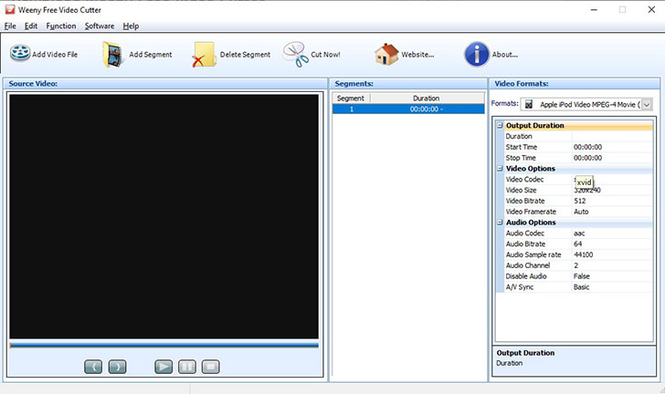 6. Weeny Free Video Cutter – простая бесплатная программа