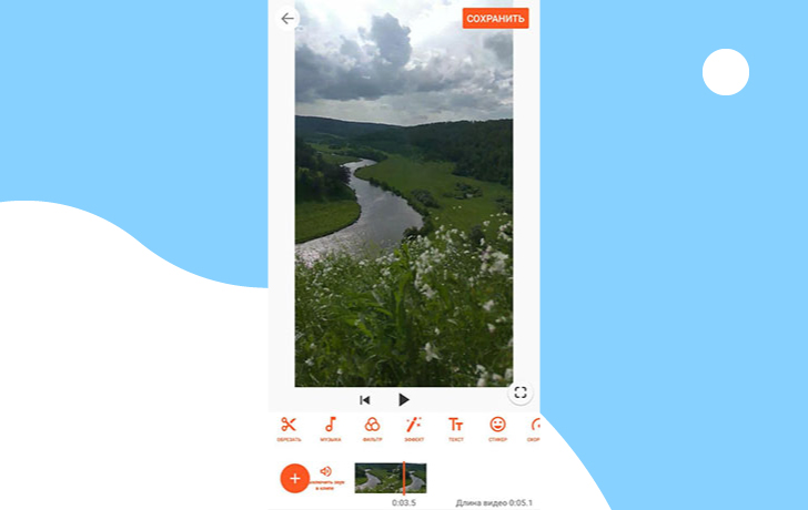 Все, что вы ждете от обрезчика: нарезание на части и склеивание. Есть приятные дополнительные функции вроде добавления картинок и аудио, фильтров и эффектов. Можно скрыть лицо на видео за маской или добавить эффект мозаики. Для тех, кто пробует себя в качестве профессионального видеомонтажера, есть GreenScreen. Есть даже любимая всеми блогерами функция PiP (picture in picture) – картинка в картинке.