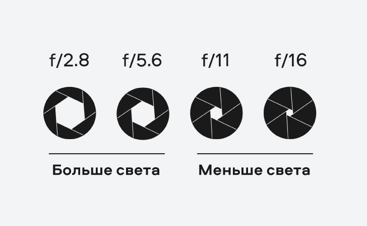 Если вы выбираете узкую диафрагму, нужно выбрать другие пути передачи света на сенсор: выставить долгую выдержку или высокие значения ISO.