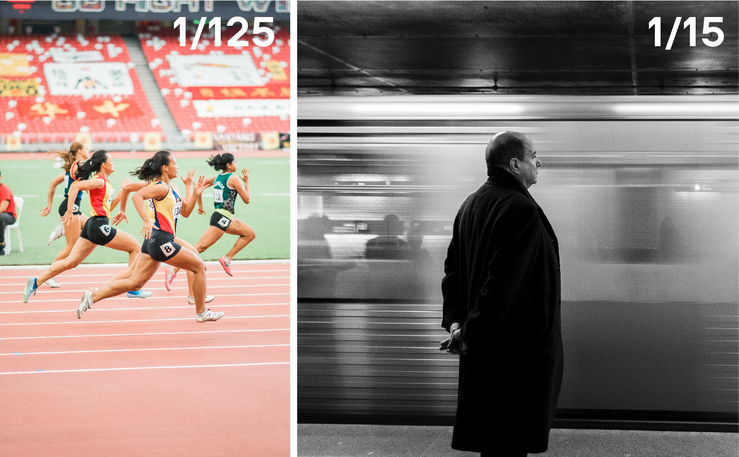 Если использовать быструю выдержку, например 1/125, вы поймаете любое движение перед объективом камеры. Медленная выдержка, например 1/15, размывает объект съемки. Это показывает, что объект не застыл, а действительно находится в движении.