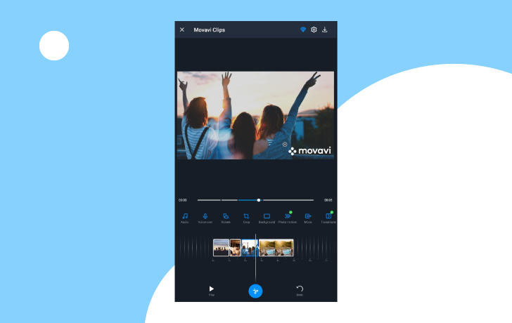 Хотите собрать красивое музыкальное видеопоздравление из видео и фото, которые скопились на вашем телефоне? Можно попробовать это приложение: если верить отзывам, с ним вы можете сделать это всего в пару кликов. Учтите, что сами видео редактировать здесь не получится. Так что, если вам нужно их сначала подрезать или подрегулировать цвета, предварительно воспользуйтесь специальной программой для монтажа – например, той же Movavi Clips.