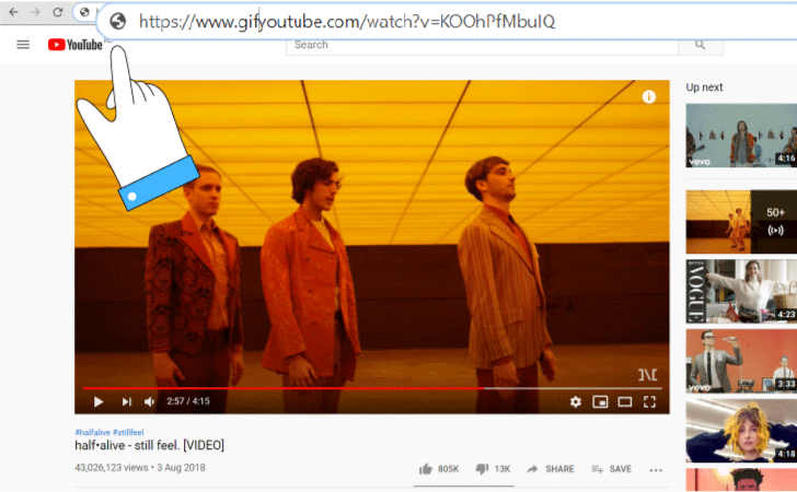 - Открываем нужное видео и просто вписываем “gif” в адрес в строке браузера, как на скрине.