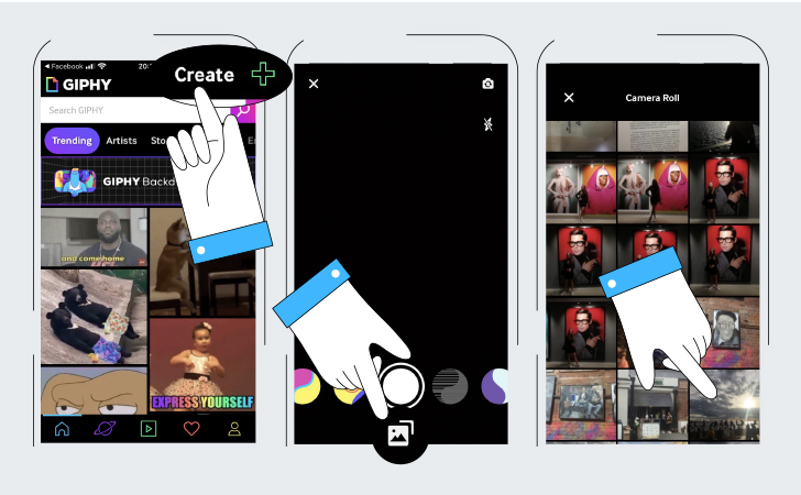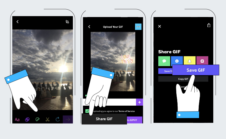 Скачайте готовый результат в формате видео или GIF. Можно загрузить свою гифку в библиотеку Giphy.