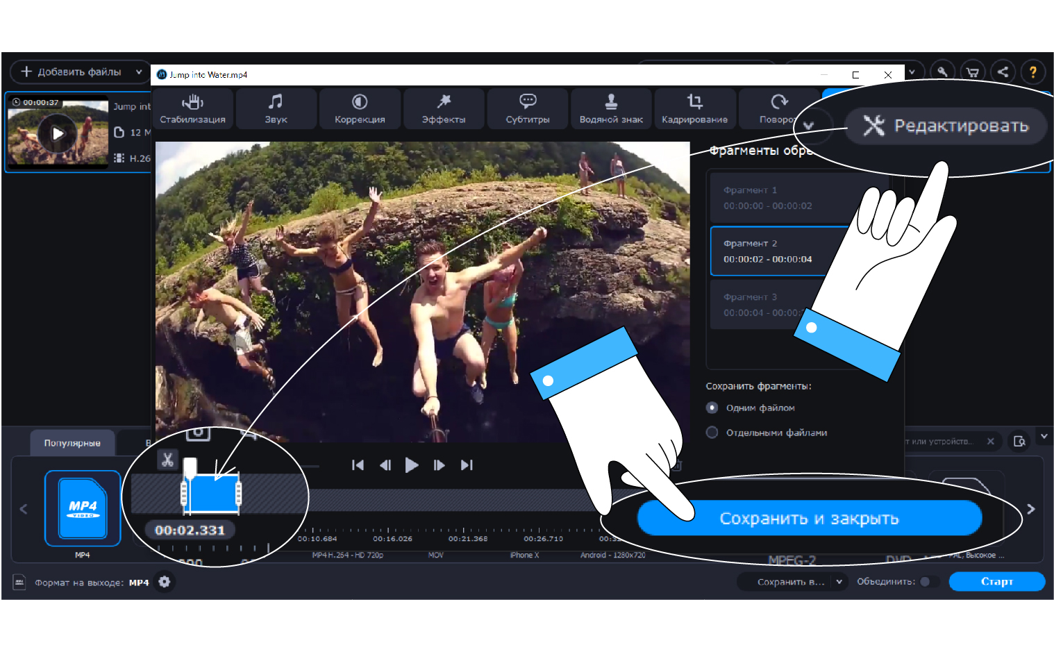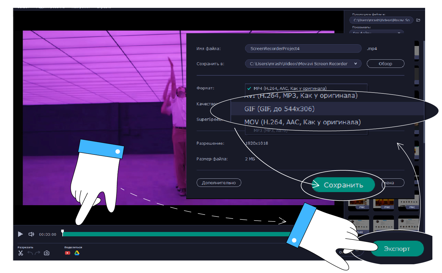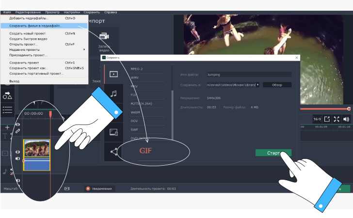 GIF в Movavi Video Editor Plus делается в 3 шага: