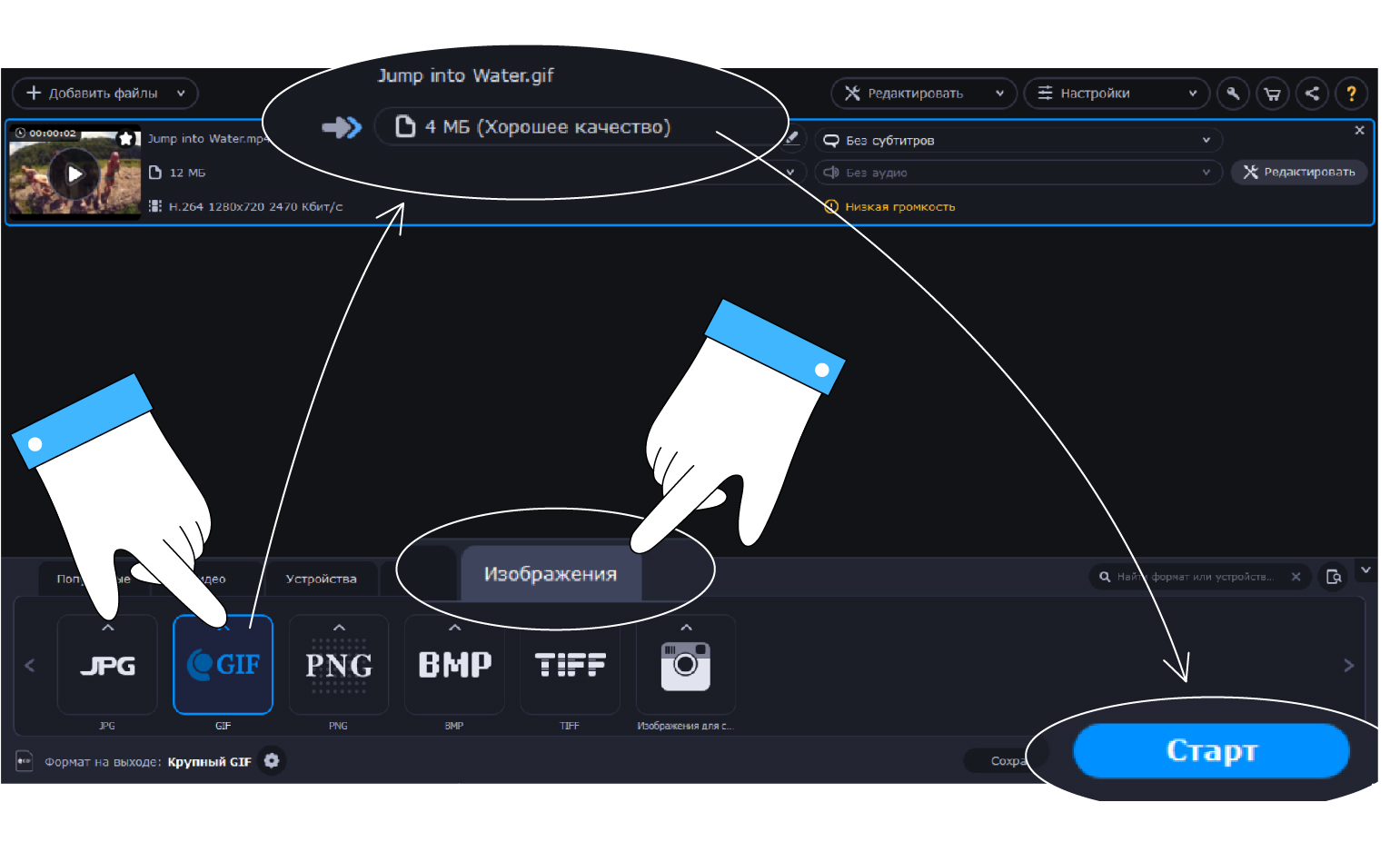 С помощью Movavi Video Converter можно не только конвертировать видео из одного формата в другой, но и делать гифки.
