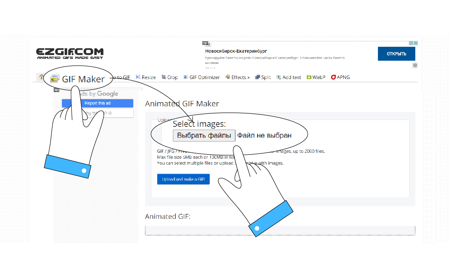 Cобрать анимированный файл из картинок можно в том же фотошопе, но есть и более доступный инструмент – бесплатный онлайн-сервис Ezgif. Он на английском, но и тут легко разобраться методом тыка.