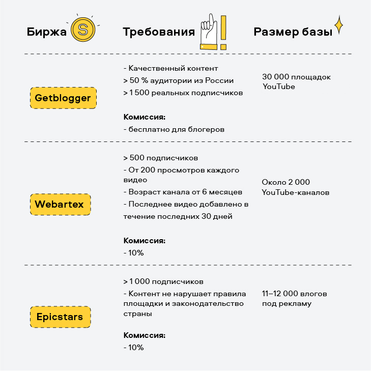 Если у вас уже есть несколько десятков подписчиков, вы можете смело обращаться к услугам рекламных бирж. Они выступают в качестве посредника между блогером и брендом: помогают компаниям находить нужных им креаторов и следят за тем, чтобы никто никого не обманул. Как правило, с их помощью разместить первую рекламу на канале быстрее и проще. Оплата за рекламу обычно приходит в течение недели после размещения ролика.