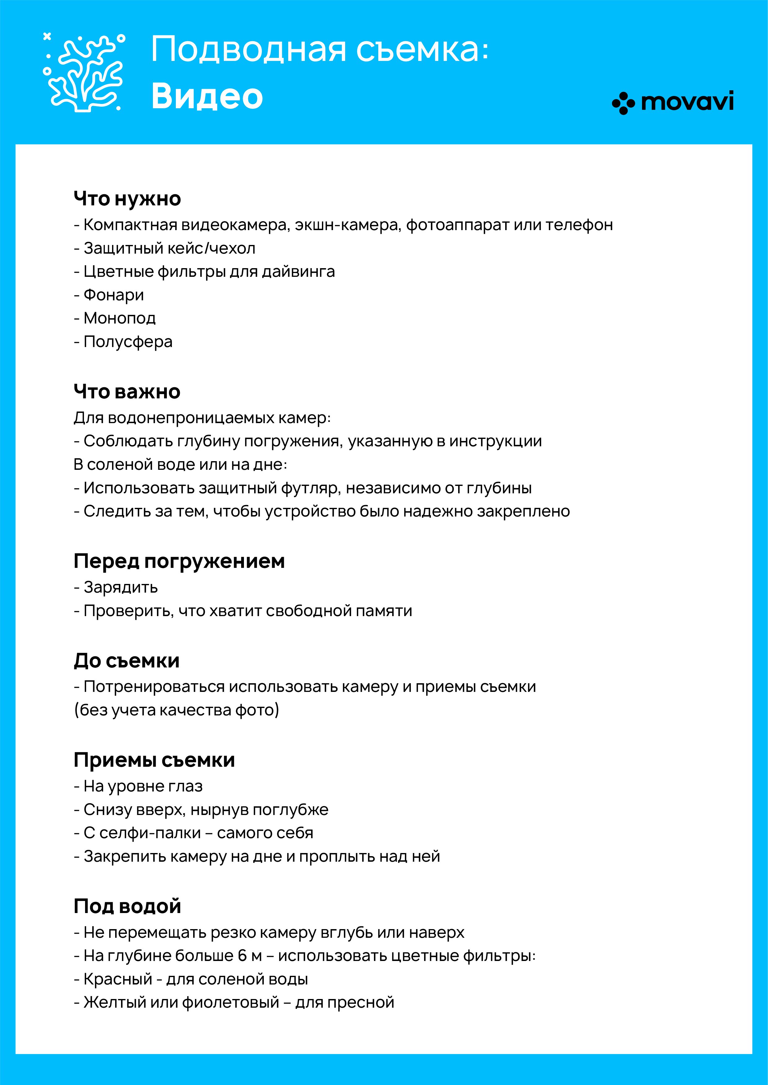 Если вы планируете брать с собой экшн-камеру во время дайвинга, вам понадобятся также красный фильтр и, возможно, дополнительное освещение – фонари.